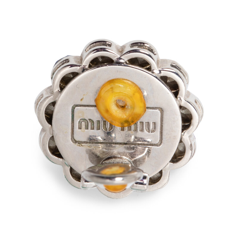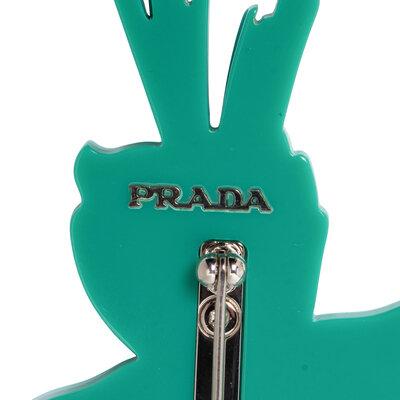 PRADA & MIU MIU, THREE BROOCHES & TWO PAIRS OF EAR CLIPS