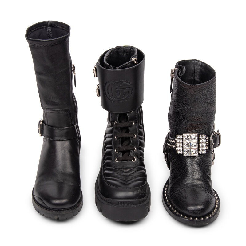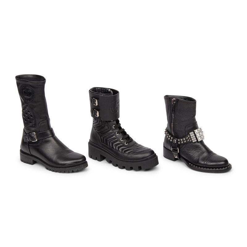 THREE PAIRS OF DESIGNER BLACK LEATHER BOOTS