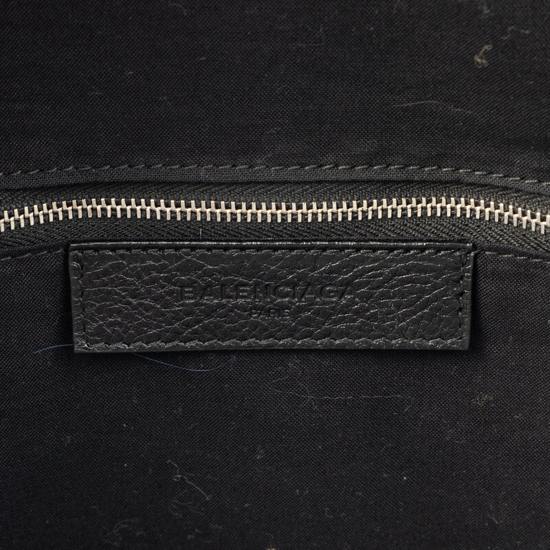 Details: Silver-tone hardware, double ended zipper closure, black cotton lining, one interior sidewall slip pocket, one interior sidewall zipper pocket