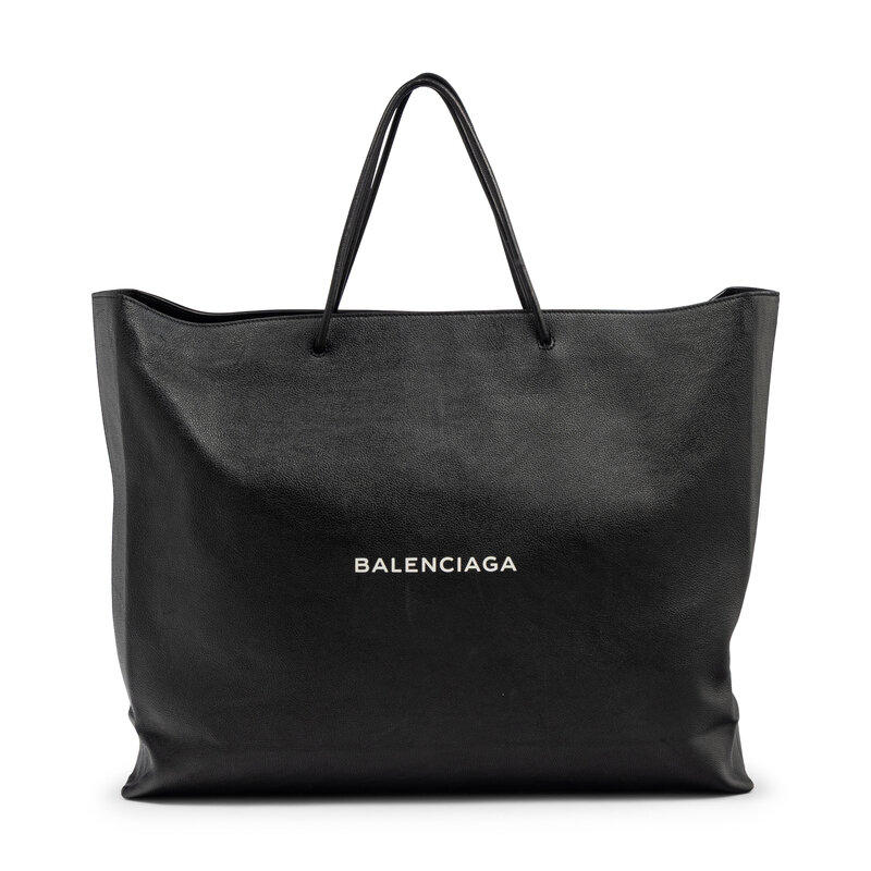 BALENCIAGA, XL LEATHER LOGO SHOPPING TOTE