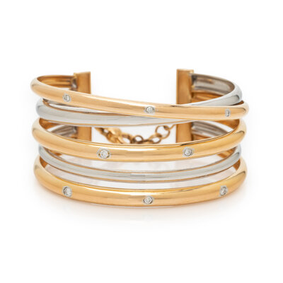 BICOLOR GOLD AND DIAMOND CUFF BRACELET