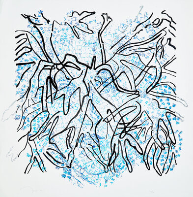 color screenprint with glitter