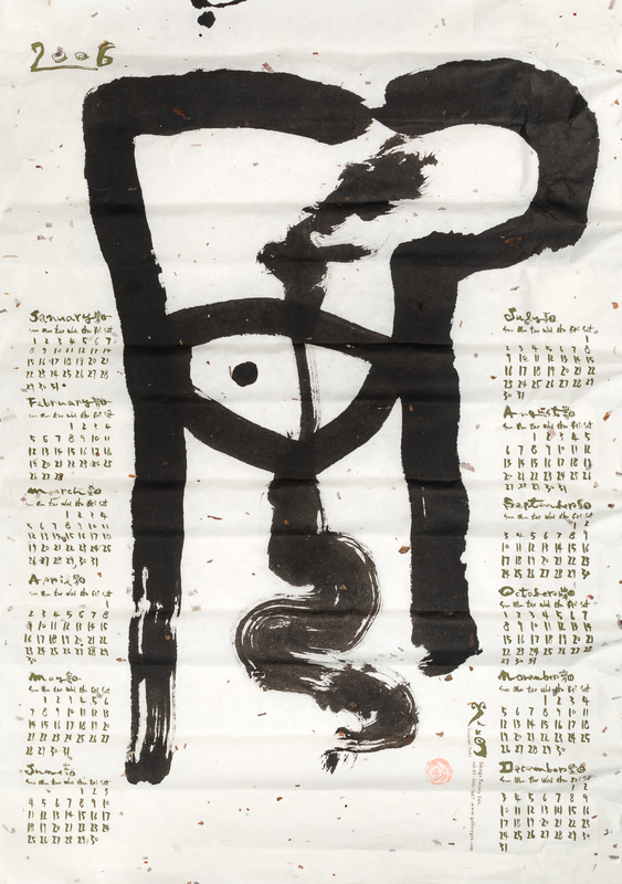 ink on paper, hanging scroll; together with a 2016 calendar
