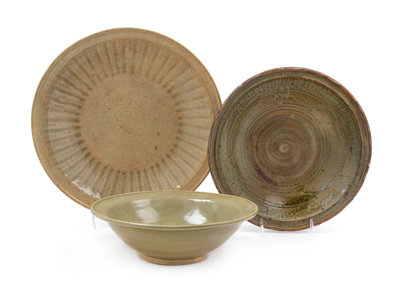Three Thai Celadon Glazed Porcelain Chargers