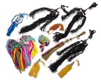 A Large Collection of Chinese Embroidered Endless Knots and Tassels