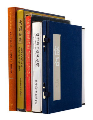 Ding Wenfu, Classical Chinese Rocks, 2002; National Palace Museum, A Special Exhibition of Incense Burners and Perfumers Throughout the Dynasties, 1994; National Palace Museum, Masterpieces of Chinese Ju-i Scepters, 1974; National Palace Museum, Masterpieces of Chinese Writing Materials, 1971; Wang Shixiang, Beijing Pigeon Whistles, 2000; Simon Kwan, Ming and Qing Bamboo, 2000; Yu Ying, Wen fang shang wan, 1997; Ronald Y. Otsuka, Selections from the Lutz Bamboo Collection, 1979; Ceramics in Scholarly Taste, Huang Xuanlong, Scholar's Accoutrements from the Jiansong Ge Collection, 2004; Stephen Little, Spirit Stones of China, 1999; National Palace Museum, Auspicious Ju-i Scepters of China, 1995.