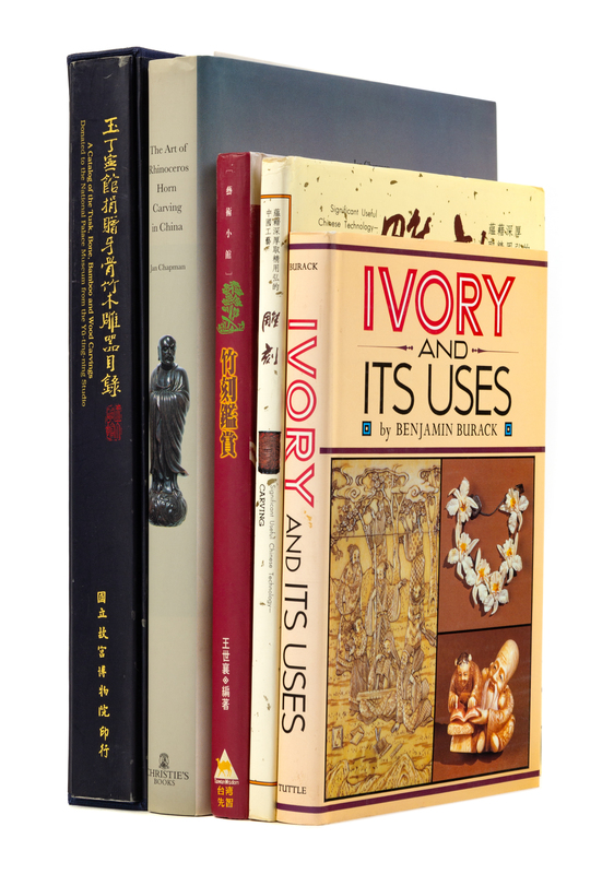 Liu Shuoshi Zhuke yishu, 1996; The Chinese University of Hong Kong Art Gallery, Chinese Ivories from the Kwan Collection, 1990; William Watson, ed., Chinese Ivories from the Shang to the Qing, 1984; Jan Chapman, The Art of Rhinoceros Horn Carving in China, 1999; Warren E. Cox, Chinese Ivory Sculpture, 1946; Zhu Jiajin and Wang Shixiang, eds., , 1987; Richard Yen, Ivory Beauty, 2002; National Palace Museum, A Catalogue of the Tusk, Bone, Bamboo, and Wood Carvings Donated to the National Palace Museum from the Yu-ting-ning Studio, 1997; Hai Bo, ed., Zhu mu ya jiao qi zhen shang, 1995; Wang Shixiang and Wan-go Wen, Bamboo Carving of China, 1983; Craig Clunas, Chinese Carving, 1996; Song Zilong, Art of Bamboo Carving of Huizhou District, 1994; Mario Prodan, Certain Ming Ivories, 1941; Ip Yee and Laurence C.S. Tam, Chinese Bamboo Carving, Part I, 1978; Arthur de Carle Sowerby, China and Ivory, 1936; Lucien Lion, Etude sur les Statuettes D'ivoire de L'epoque Ming, 1936; John E. Paradissis, Chinese Art Ivory, 1940; Geoffrey Willis, Ivory, 1968; Benjamin Burack, Ivory and Its Uses, 1984; Arthur de C. Sowerby, The China Journal: Ivory Number, 1936; Wang Shixiang, ed., Zhu ke jian shang, 1997; Gail Joice, Michael Knight, and Pamela McClusky, Ivories in the Seattle Art Museum, 1987.