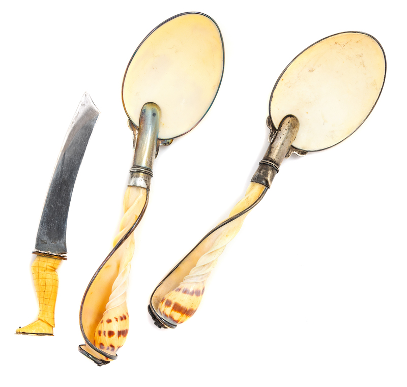 A Pair of Continental Silver and Shell Serving Spoons