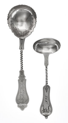 comprising a sauce lade and a cream ladle, each with a twist decorated handle.