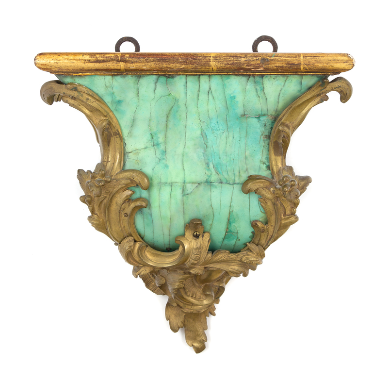 A Louis XV Style Gilt Bronze Mounted and Green Lacquered Bracket