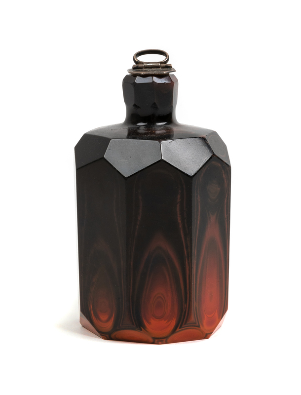 A Continental Marbled Red and Black Glass Covered Jar