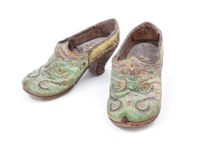 A Pair of Dutch Embroidered Leather Shoes