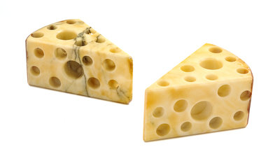 each in the form of a wedge of Swiss cheese.