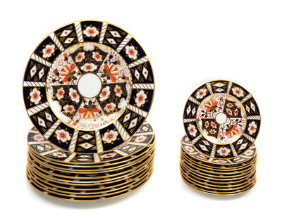 in the Imari pattern, comprising twelve dinner plates and twelve bread and butter plates.
