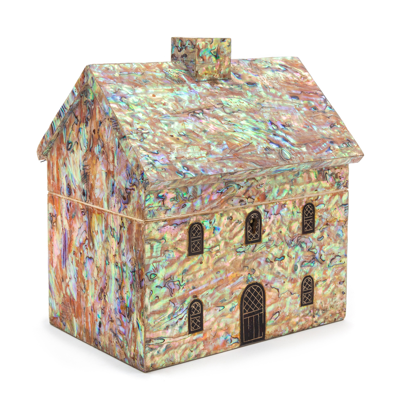 An English Mother-of-Pearl Veneered House-Form Tea Caddy
