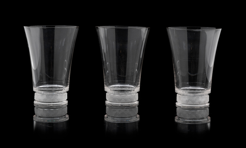 A Set of Ten Lalique Molded Glass Tumblers, Reims