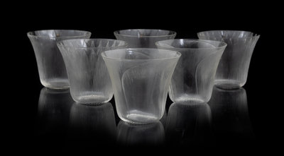 A Set of Six Lalique Molded Glass Tumblers, Pavot
