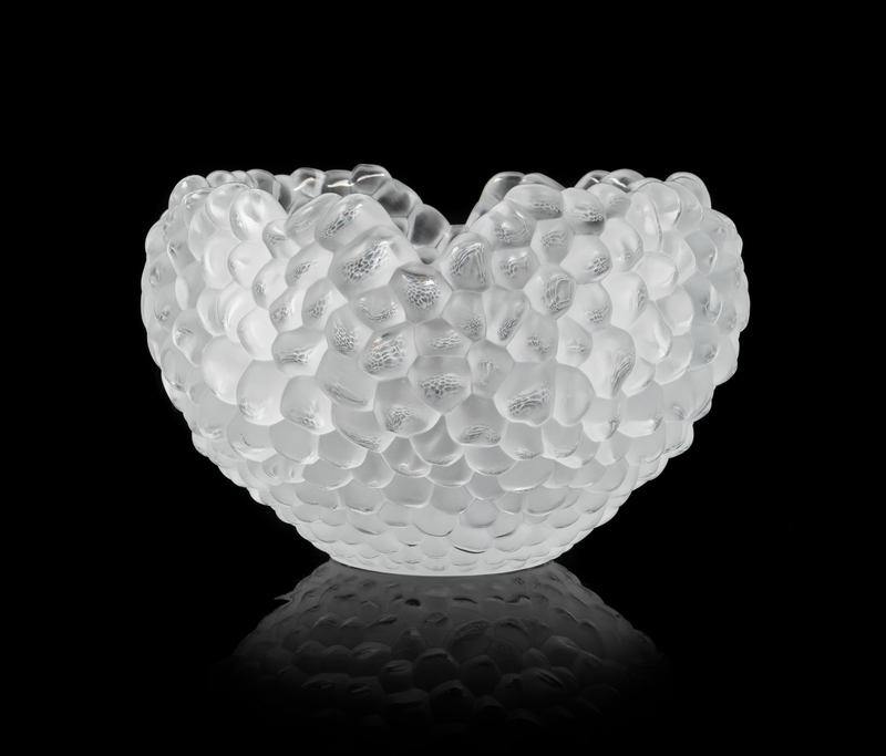 A Lalique Style Molded and Frosted Glass Grape Bowl