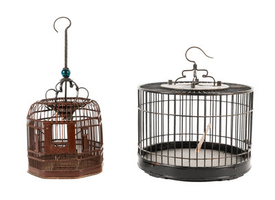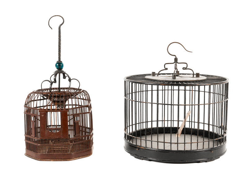 Two Chinese Lacquered Bamboo Birdcages