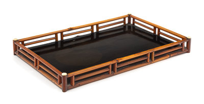 A Chinese Bamboo and Lacquer Rectangular Tray