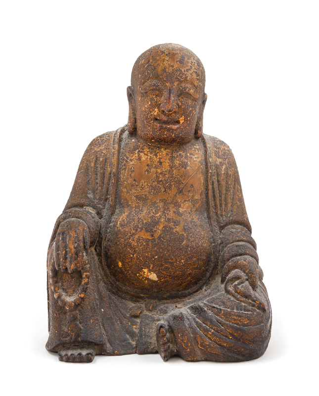 A Chinese Carved Wood Figure of Laughing Buddha