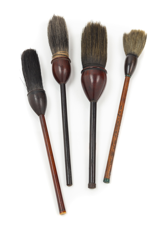 Four Chinese Hardwood Calligraphy Brushes