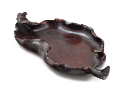 A Large Chinese Carved Rosewood Leaf-Form Tray