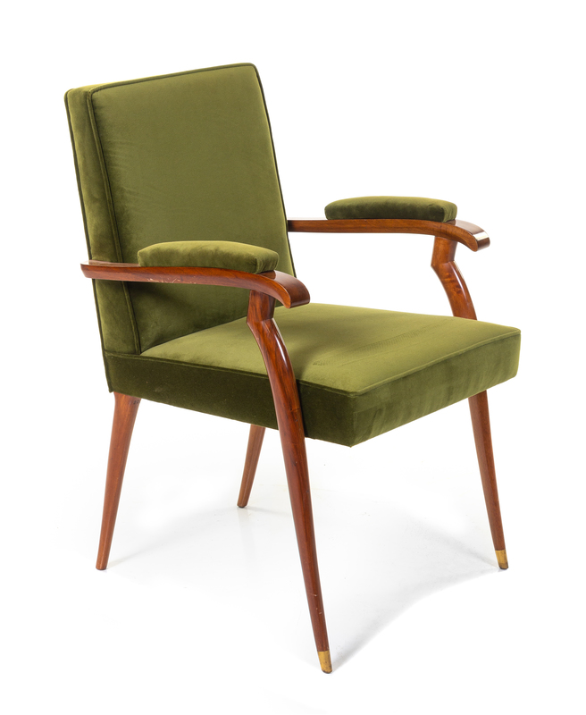 lacquered mahogany, upholstery, brass