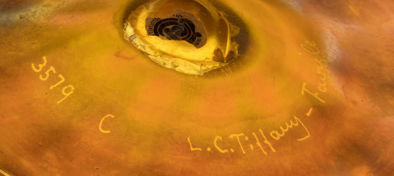 etched 3579C L.C.Tiffany Favrile to underside with partial applied manufacturer's label