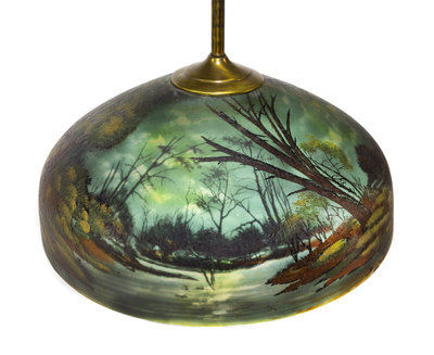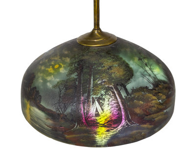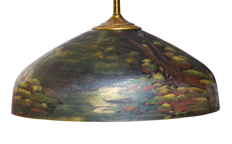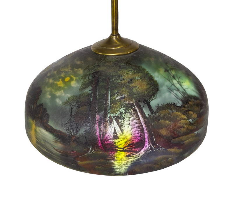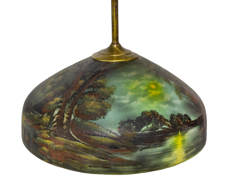 reverse painted glass, brass