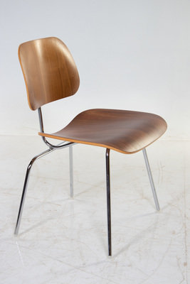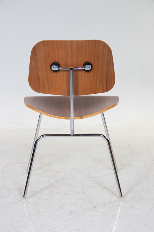 walnut plywood, chrome-plated steel