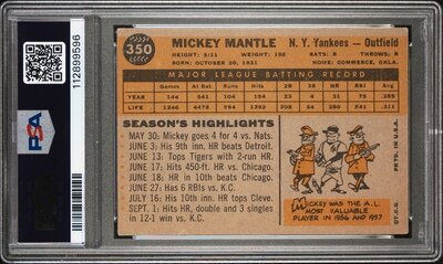 A 1960 Topps Mickey Mantle Baseball Card No. 350 (PSA 3 VG)