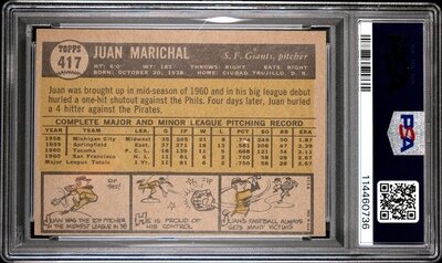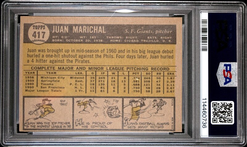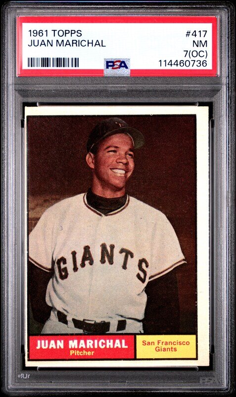 A 1961 Topps Juan Marichal Rookie Baseball Card No. 417 (PSA 7 NM OC)