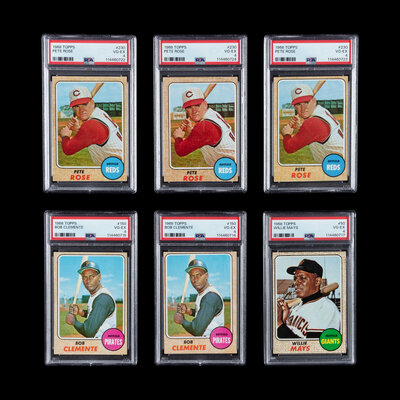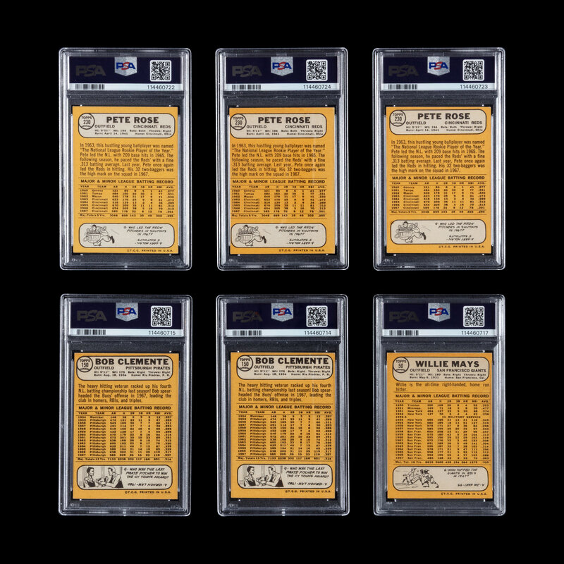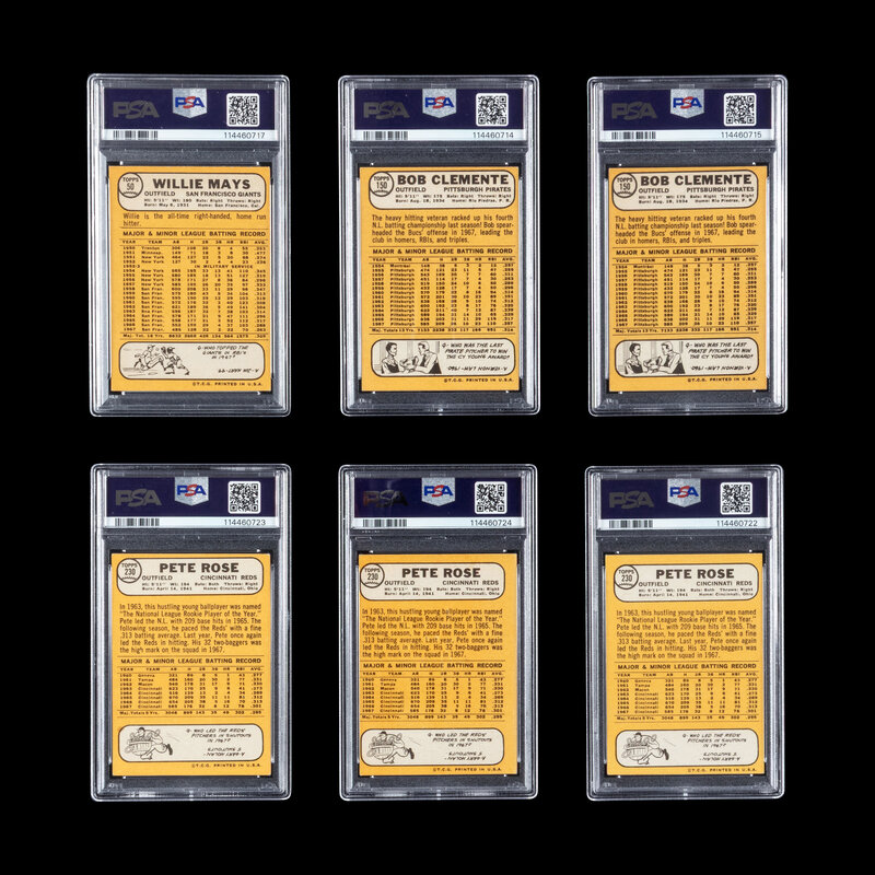 comprising Roberto Clemente No. 150 PSA 4 VG-EX (x2); Willie Mays No. 50 PSA 4 VG-EX; Pete Rose No. 230 PSA 4 VG-EX (x3).