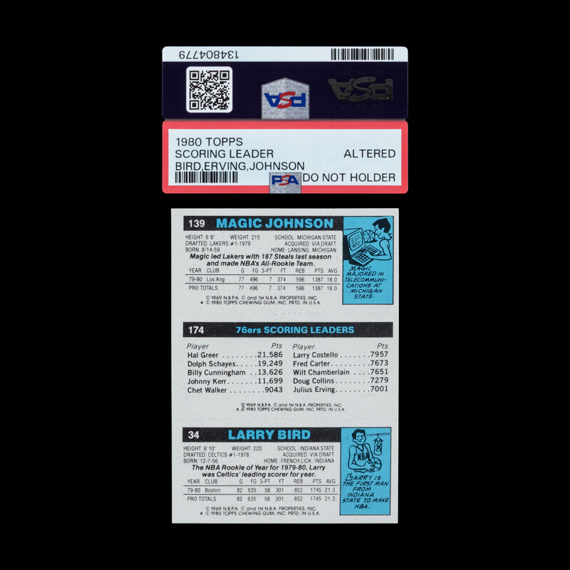 A 1980 Topps Larry Bird Magic Johnson Rookie Basketball Card
