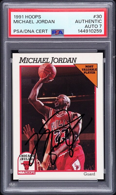 A 1991 Hoops Michael Jordan Signed Autograph Basketball Card No. 30 (PSA 7 AUTO)