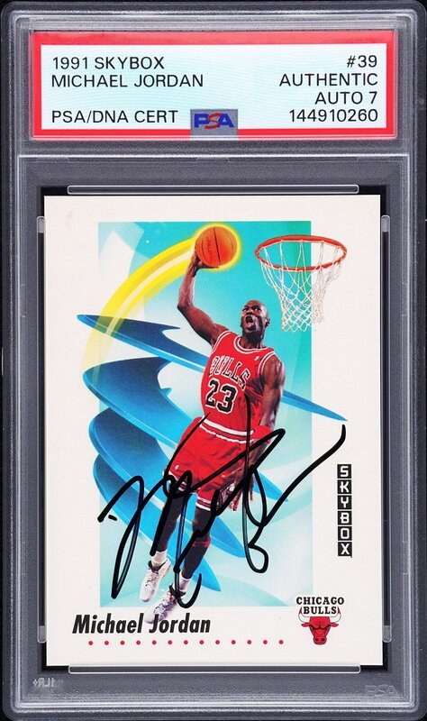 A 1991 Skybox Michael Jordan Signed Autograph Basketball Card No. 39 (PSA 7 AUTO)