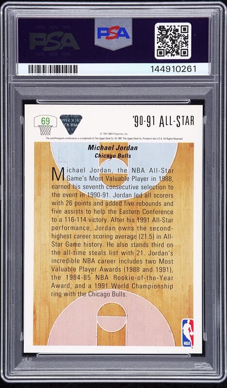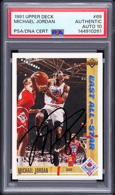 A 1991 Upper Deck Michael Jordan Signed Autograph Basketball Card No. 69 (PSA 10 GEM MINT AUTO)