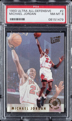A 1993 Ultra All Defensive Michael Jordan Basketball Card No. 2 (PSA 8 NM-MT)