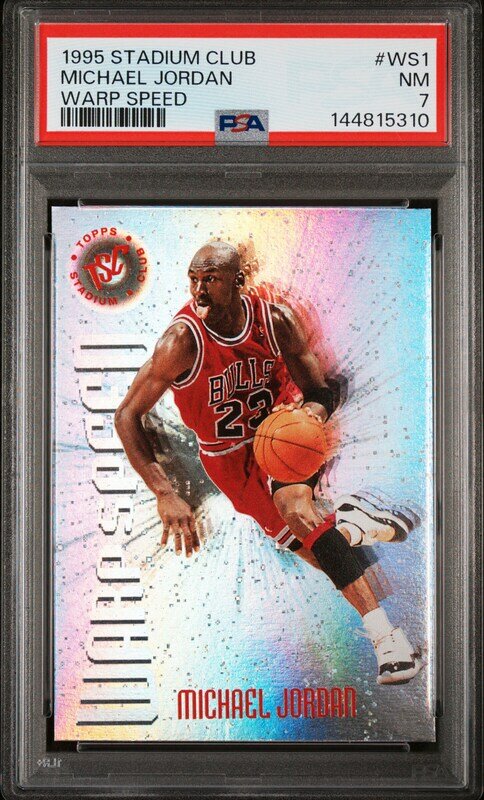 A 1995 Topps Stadium Club Michael Jordan Warp Speed Basketball Card No. WS1 (PSA 7 NM)