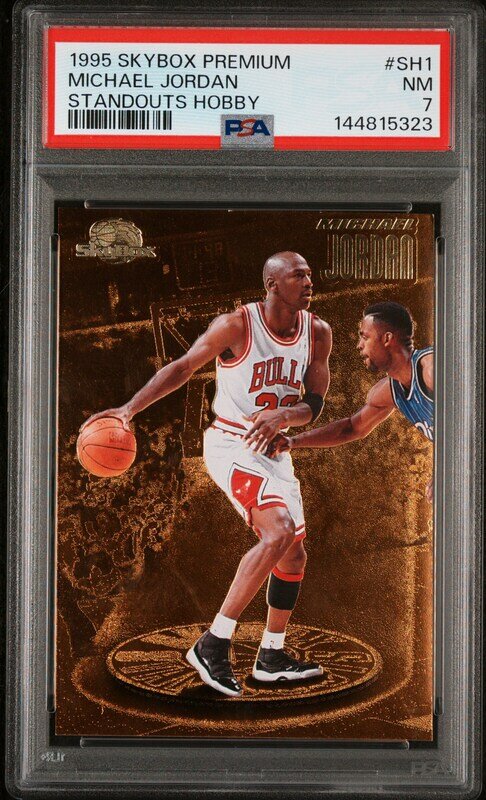 A 1995 Skybox Premium Michael Jordan Standouts Hobby Basketball Card No. SH1 (PSA 7 NM)