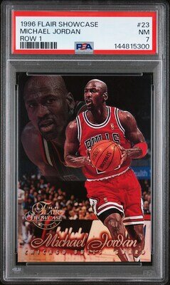 A 1996 Flair Showcase Michael Jordan Row 1 Basketball Card (PSA 7 NM)
