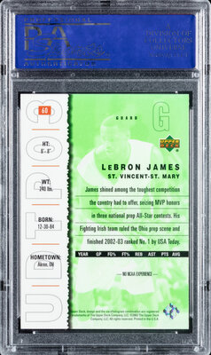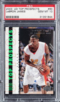 A 2003 Upper Deck Top Prospects LeBron James Rookie Basketball Card No. 60 (PSA 10 GEM MINT)