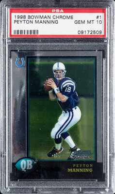 A 1998 Bowman Chrome Peyton Manning Rookie Football Card No. 1 (PSA 10 GEM MINT)