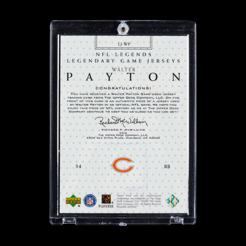A 2000 Upper Deck Walter Payton Legendary Jerseys Football Card No. LJ-WP (Three Color Jersey Patch)