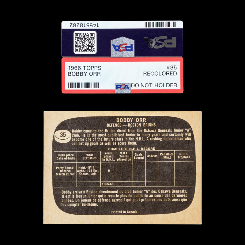 A 1966 Topps Bobby Orr Rookie Hockey Card No. 35 (PSA Recolored Designation)