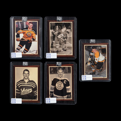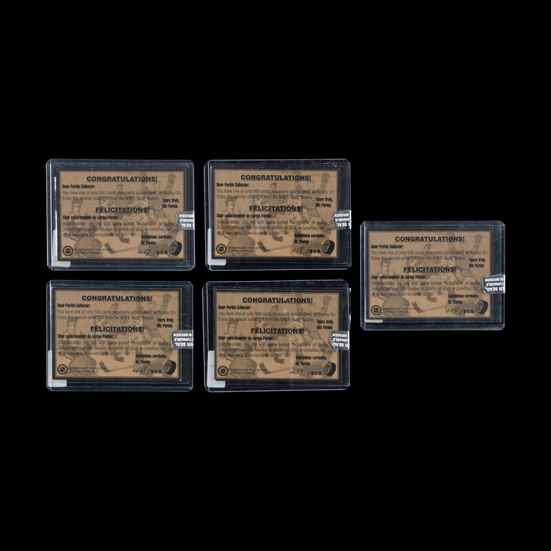 A Collection of Five 1995 Parkhurst Bobby Orr Signed Autograph Hockey Cards