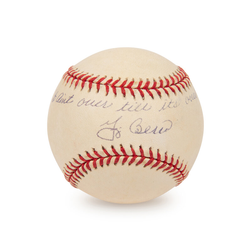 A Yogi Berra Single Signed Baseball Inscribed "It Ain't Over Till It's Over"