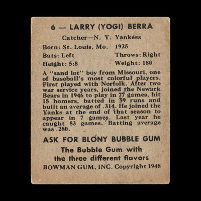 A 1948 Bowman Yogi Berra Rookie Baseball Card No. 6