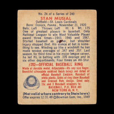 A 1949 Bowman Stan Musial Baseball Card No. 24